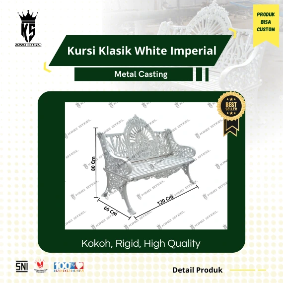 Kursi Mahkota berbahan metal casting adalah solusi terbaik bagi siapa saja yang mencari kombinasi antara keindahan dan fungsionalitas. Kami memastikan bahwa setiap detail dirancang untuk memberikan kenyamanan maksimal sekaligus meningkatkan estetika ruang luar Anda. Jadi, jangan ragu lagi! Pilih Kursi Mahkota sekarang dan nikmati pengalaman bersantai yang mewah serta nyaman di taman atau teras Anda!