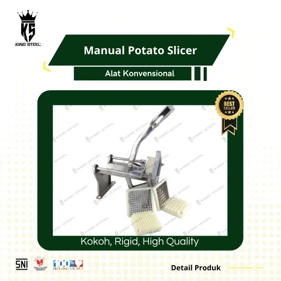 Manual Potato Slicer atau Alat Pemotong Kentang mempermudah Anda dalam mengolah kentang dengan cepat, mudah, dan efisien. Anda dapat menggunakan alat ini untuk berbagai usaha kuliner yang memanfaatkan kentang sebagai bahan utama, termasuk restoran, kedai makanan cepat saji, atau usaha UMKM camilan berbasis kentang.